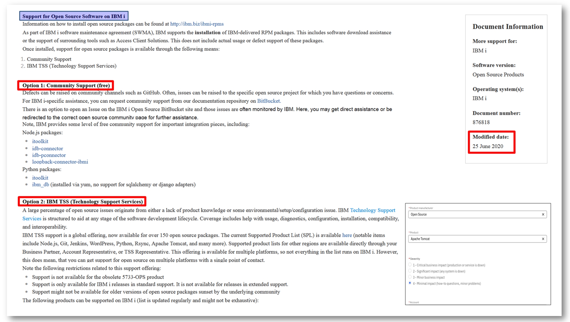 - Ouverture de tickets sur le même site que pour les tickets IBM i